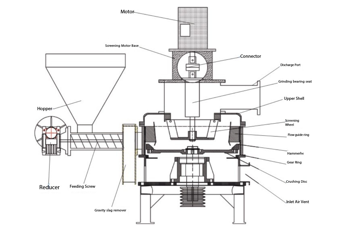 Mesin ini menghapuskan keperluan untuk skrin tradisional, yang terdedah kepada penyumbatan dalam aplikasi baja. Pendesak langkah (roda pengelas) dikawal VFD terletak di bahagian atas ruang. Zarah-zarah yang mencapai kehalusan sasaran ditarik keluar oleh tekanan negatif, manakala zarah kasar dialihkan oleh kafan panduan dalaman kembali ke zon pengisaran untuk pemprosesan selanjutnya. Proses "pembentukan satu kali" ini mengurangkan pengisaran berlebihan dan mengurangkan penggunaan tenaga dengan ketara.