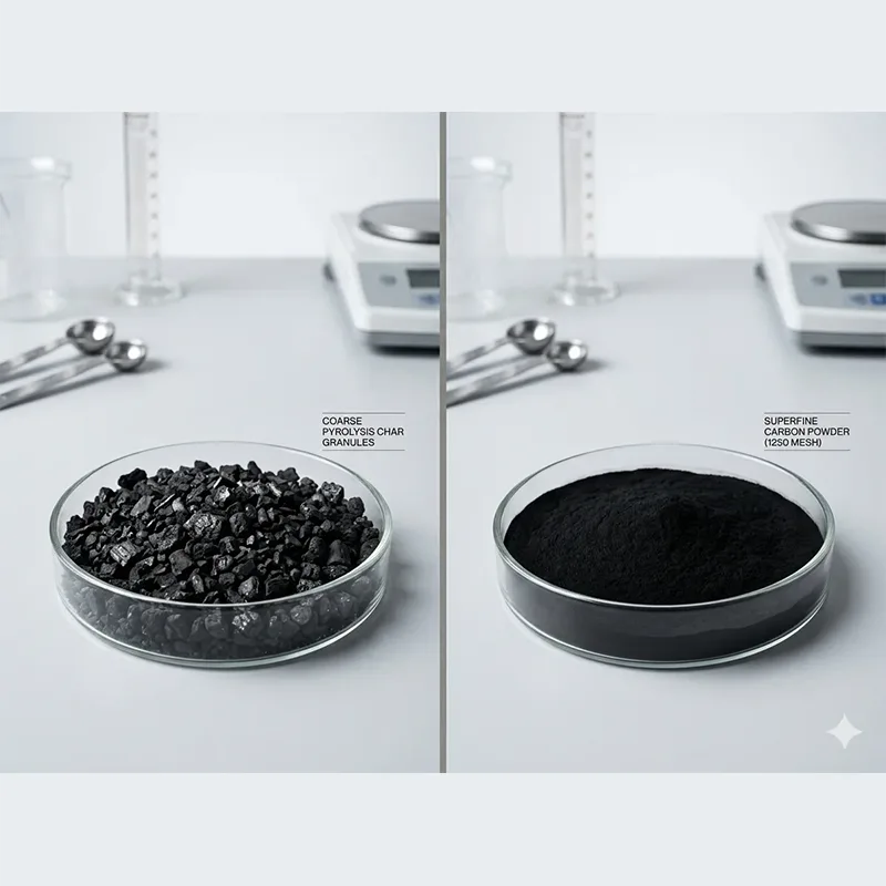 Karbon pirolisis mentah selalunya melelas, mengandungi sisa minyak, dan mempunyai ketumpatan pukal yang sangat rendah (gebu). Pengisar tradisional mengalami kehausan yang cepat dan tersumbat dalaman. Sistem Starwin Mill XSW menggunakan reka bentuk impak mekanikal berkelajuan tinggi dengan klasifikasi udara bersepadu untuk mengurangkan arang mentah (1-10mm) kepada D97 yang konsisten iaitu 325 hingga 1250 mesh.
