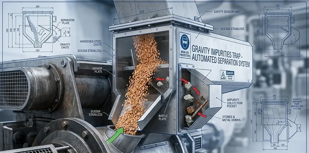 Klasifikasi Udara tanpa skrin: Kehalusan dikawal oleh pengelas udara dikawal VFD. Tiada skrin untuk dibersihkan atau diganti, yang menghapuskan risiko mesh blinding biasa dalam pemprosesan kanji.